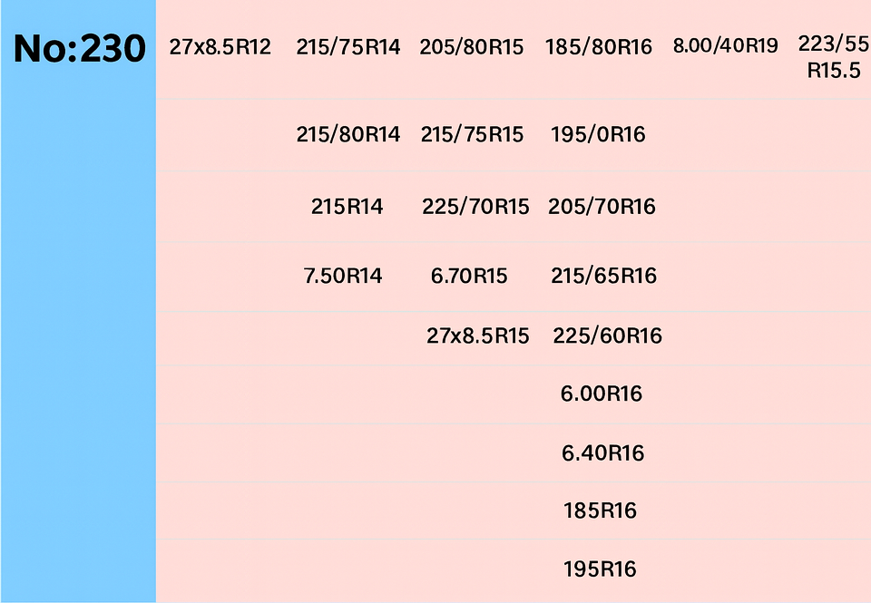| αλυσίδες χιονιού | 80, 90, 100, 130, 230 |