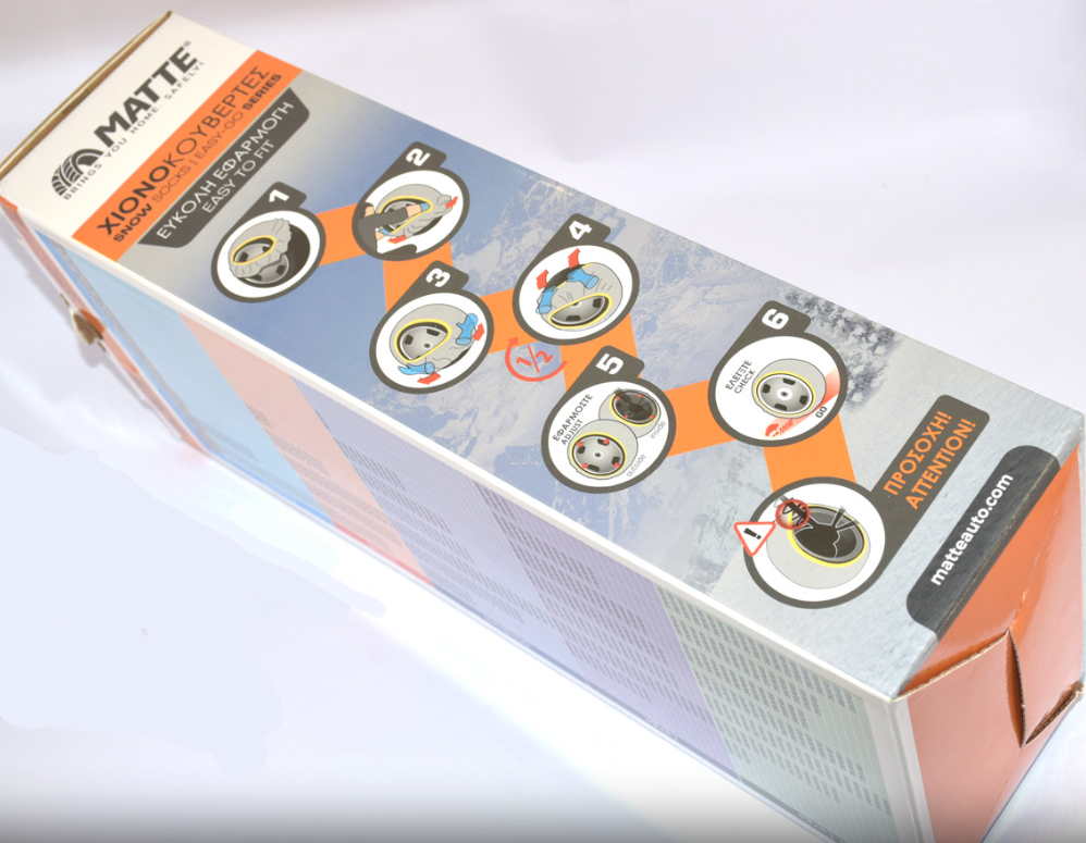 - Εύκολη και γρήγορη τοποθέτηση (μέσα σε 2 λεπτά), φοριούνται απλά σαν κάλυμμα των τροχών.